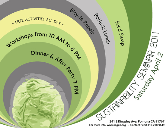 Sustainability Seminar 2011Join us for our annual Sustainability Seminar on Saturday, April 2th, 2011! Native plants, bonsi gardening, home rain catchment, solar power and home energy efficiency, bicycle repair, natural homemade beauty products, sewing your own clothes, reducing toxic products at home, and salvage design will all be topics presented. A discussion forum will take place in the evening. A potluck lunch at noon, and dinner and a closing party will happen after the evening forum. See you soon!!!