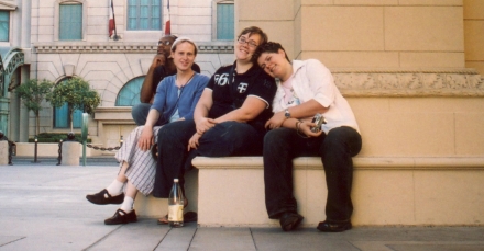 Two current community members (on the left), and two former (on the right) on a road trip in Las Vegas.